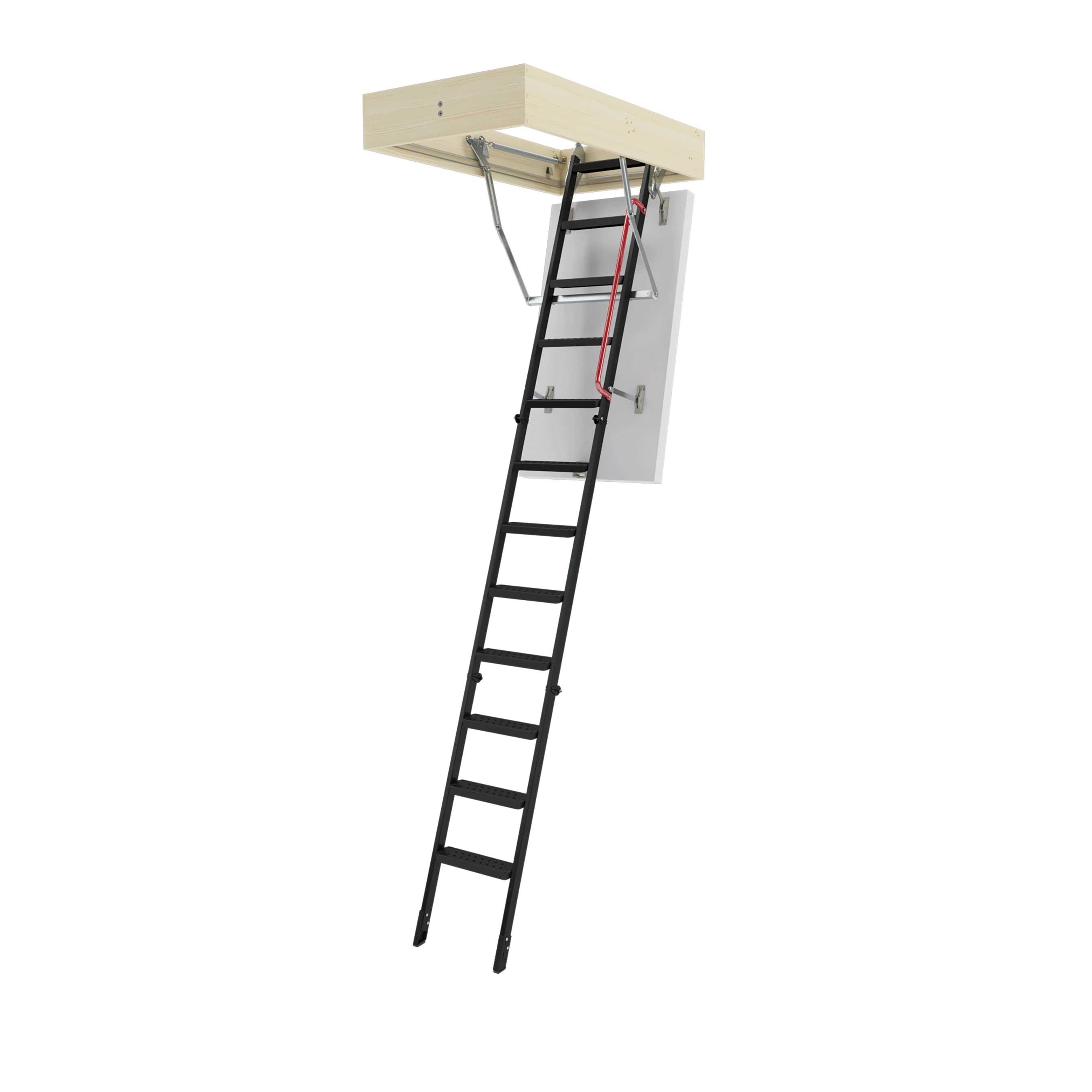 Представляет собой складную конструкцию из металлического лестничного марша и термоизоляционного люка.