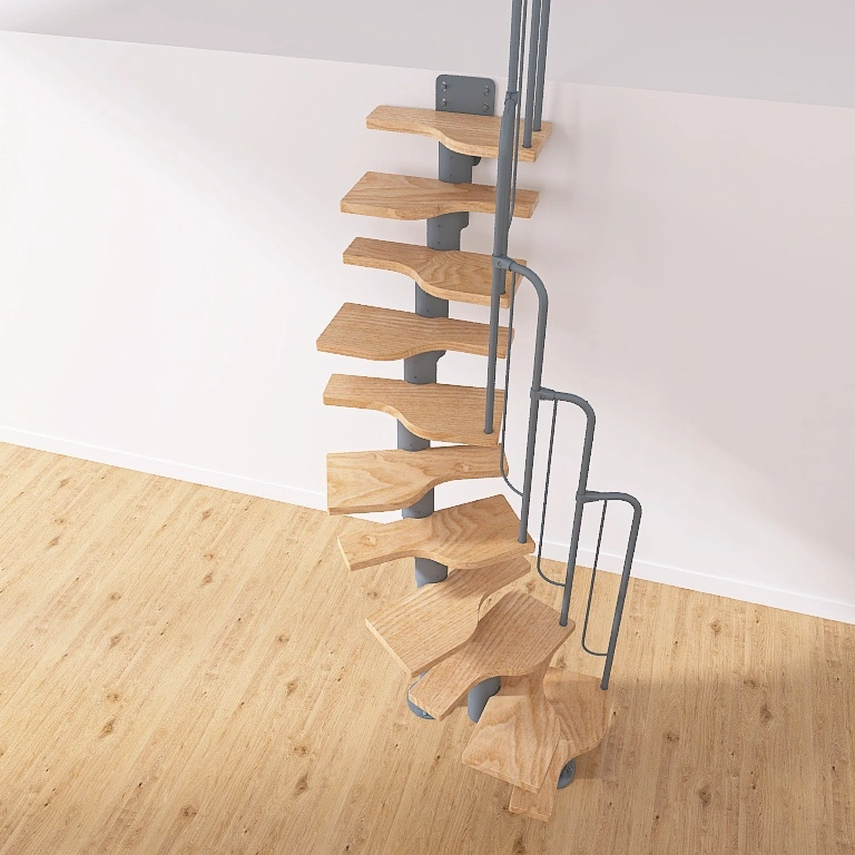 Лестничный марш выполнен из металла, покрытого порошковой краской, на ступенях сделаны специальные противоскользящие насечки. Для максимального комфорта и безопасности подъема лестница оснащена боковым металлическим поручнем красного цвета. Для правильного и быстрого монтажа рекомендуется дополнительно приобретать монтажный комплект LXK.
