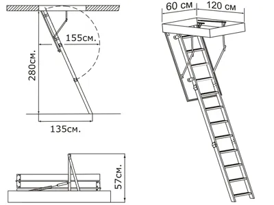 Чердачная лестница с люком OMAN PRIMA STANDARD 60х120 см, h-280 см