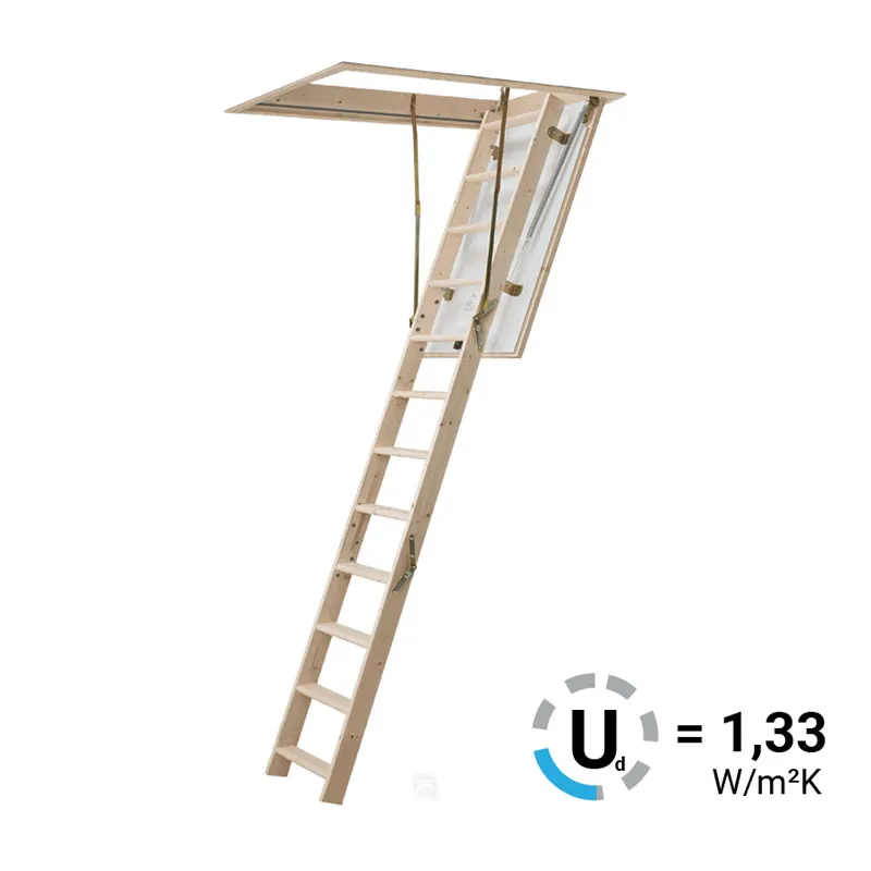 Превосходно подходит для домов, в которых наблюдается значительная разница температур между неотапливаемым холодным чердаком и отапливаемым жилым помещением. В данной модели применена новая конструкция, повышающая прочность и надежность движущихся элементов. Нагрузка при эксплуатации перенесена на лестничный марш, благодаря чему крышка полностью заполнена утеплителем. Лестница LWT комплектуется удобным поручнем и пластиковыми наконечниками на ножки. Монтажный комплект LXK приобретается отдельно.
