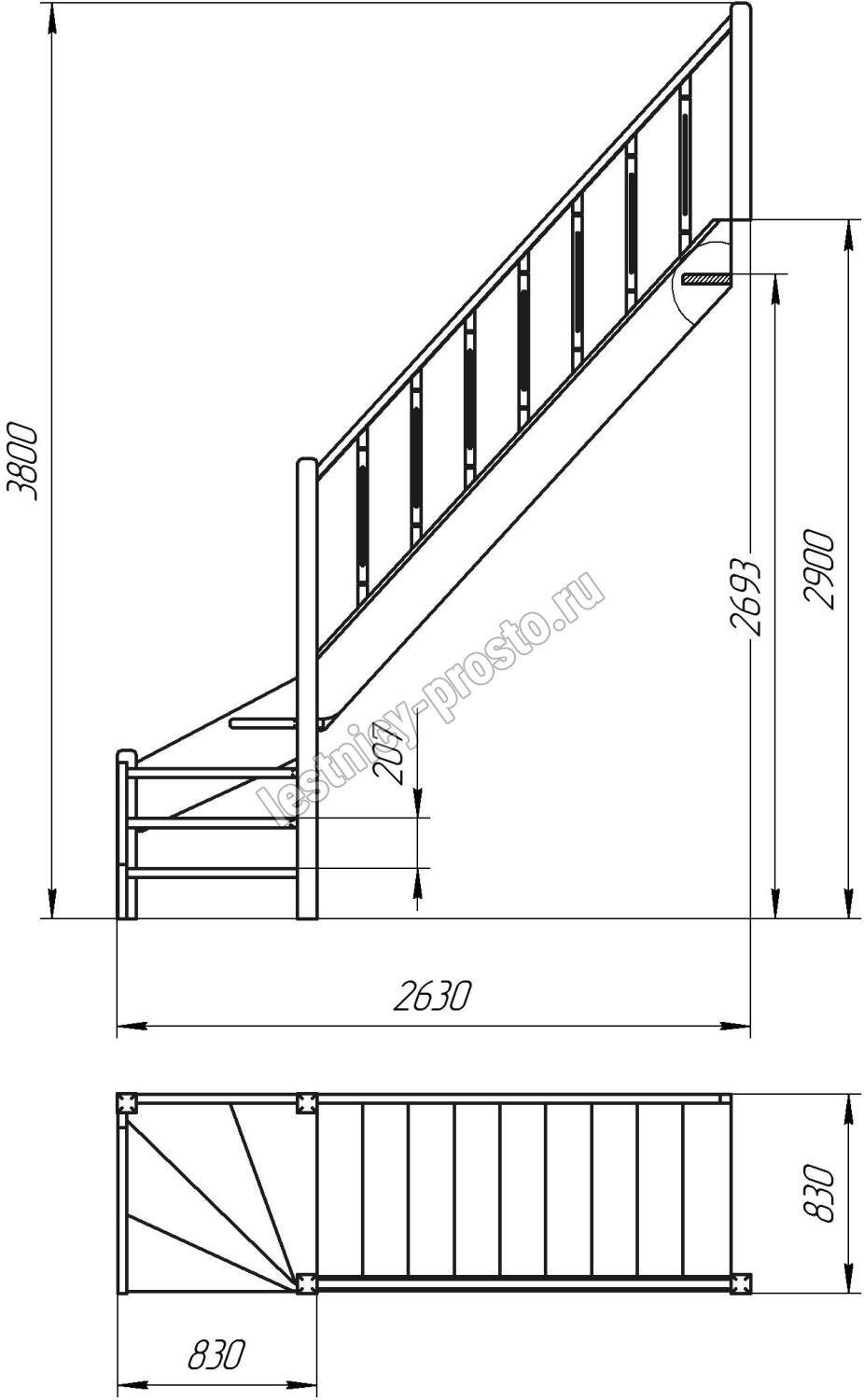 Компактная лестница, легко поддается доработке по высоте на объекте. Удобный поручень по второму маршу обеспечивает безопасность и законченный эстетический вид. Монтаж осуществляется силами двух человек на объекте по указаниям, приведенным в паспорте на лестницу.