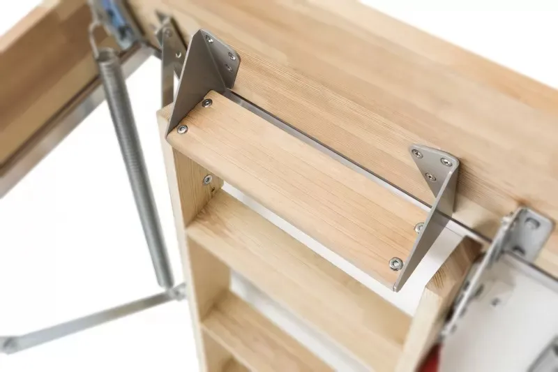 Ступени и поручень лестницы изготовлены из дуба, остальные элементы из сосны.