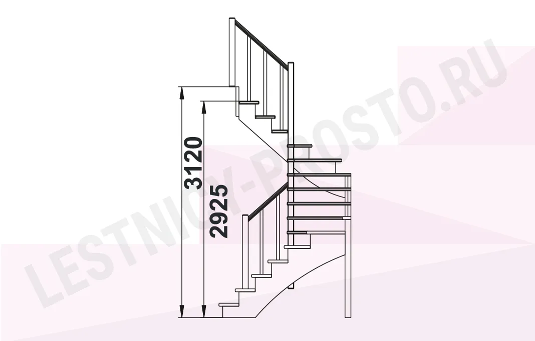 Базовый комплект включает в себя деревянные элементы лестницы и ограждения без какого-либо покрытия.