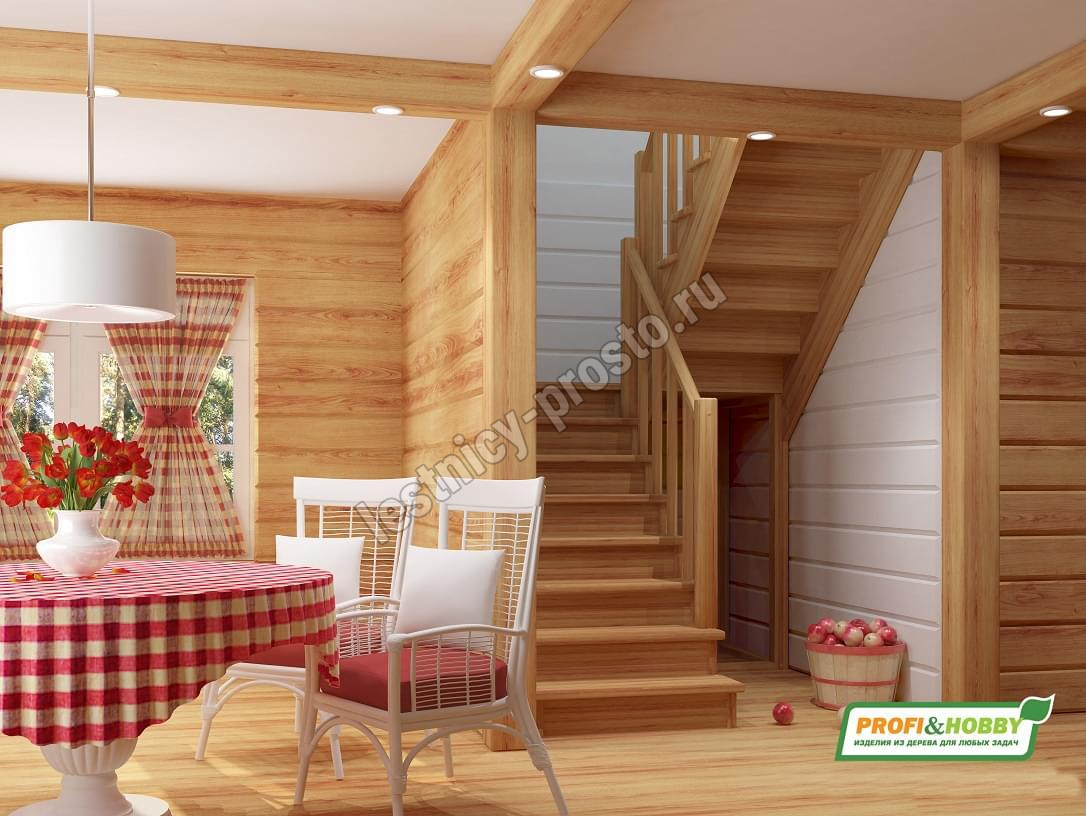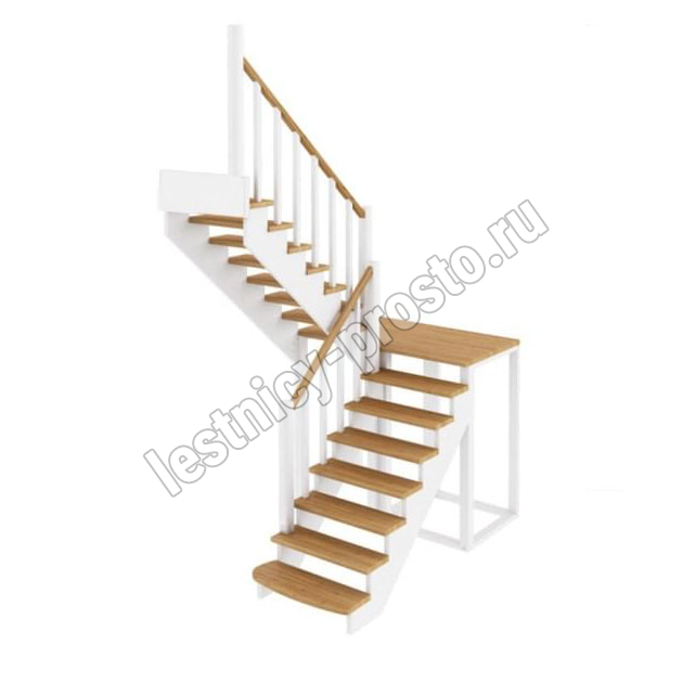 Базовый комплект включает в себя деревянные элементы лестницы с подступёнками и ограждение без какого-либо покрытия.