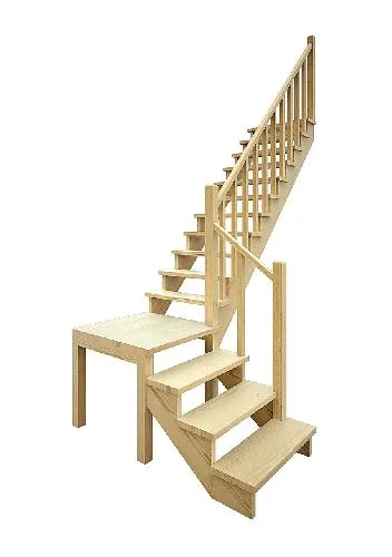 Базовый комплект включает в себя деревянные элементы лестницы и ограждения без какого-либо покрытия.
