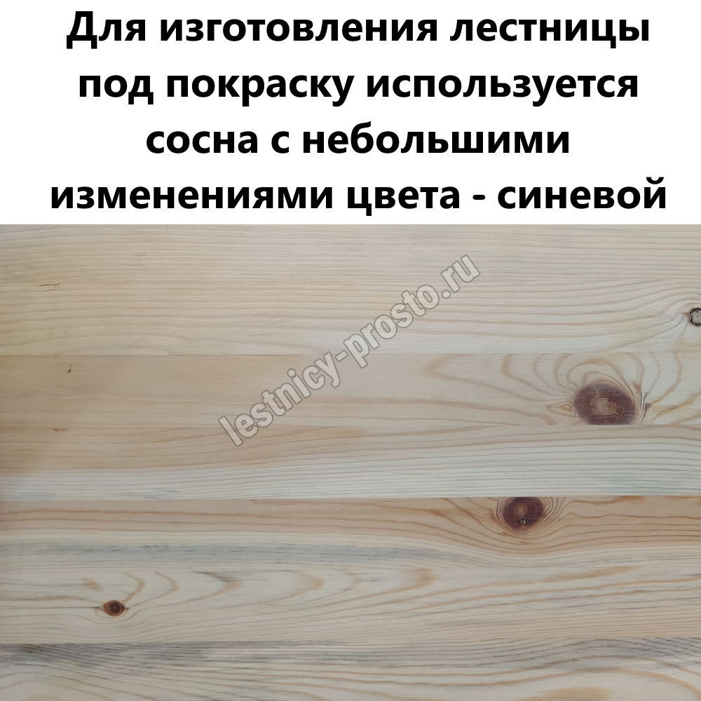 Обратите внимание! Данный вариант лестницы изготовлен из сосны эконом-класса, которая имеет местами видимые изменения цвета (в синий или серый) - это никак не отражается на прочности и надежности лестницы, но может быть заметно при прозрачных покрытиях или покраске в светлые цвета.