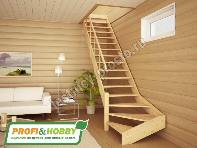 Базовый комплект включает в себя деревянные элементы лестницы без какого-либо покрытия.