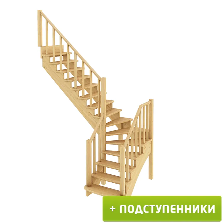 Базовый комплект включает в себя деревянные элементы лестницы и ограждения без какого-либо покрытия.