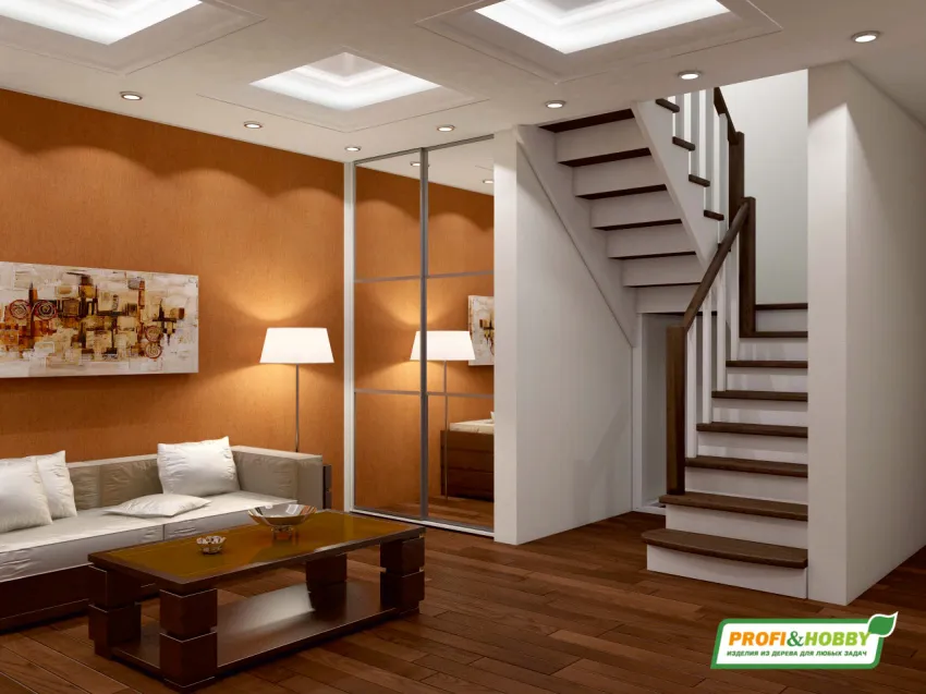 Надёжная современная лестница выполнена по немецкой технологии. Стоимость указана для лестницы с ограждением (с одной стороны); Поставляется в разобранном виде, в комплекте необходимый крепёж; Лестницу можно собрать самостоятельно; Так же, вы можете заказать услугу монтажа нашими специалистами; 4 вида породы дерева для изготовления лестницы: сосна, бук, ясень, дуб; возможна комбинированная лестница: из сосны (ступени бук, ясень, дуб); Деревянные элементы без какого-либо покрытия, отшлифованы, готовы к покраске. За дополнительную плату, вы можете изменить любые параметры, а именно: увеличить глубину ступени; увеличить ширину марша до 900 мм. и выше; заказать подступенки к лестнице; заказать отделку перекрытия (между 1-м и 2-м этажами); изготовить дополнительный промежуточный марш; заказать ограждение 2-го этажа; покраска в любой цвет или несколько цветов или покрытие защитными средствами; дополнение балясины из нержавеющей стали деревянными элементами; покраска балясин из нержавеющей стали порошковой краской в цвет RAL.
