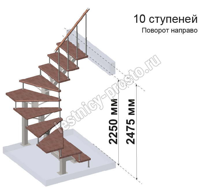 Комплект ограждений для П-образной лестницы PROSTO MONO из 10 ступеней.