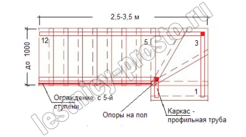 Комплект для г-образной лестницы на металлокаркасе PROSTO DUE или PROSTO DOUBLE из 12 ступеней. <br>