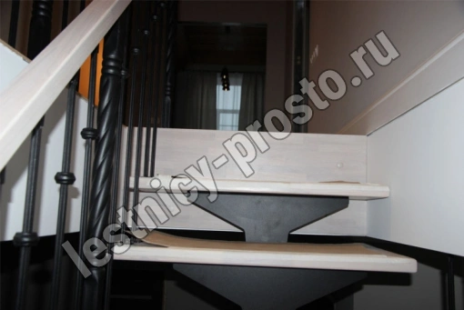Ступени лестницы изготовлены из дерева категории А/В паркетной склейки без какого-либо покрытия. Вы можете заказать у нас предварительную профессиональную покраску деревянных элементов материалами БИОФА в широкий спектр цветов (стоимость зависит от количества ступеней).