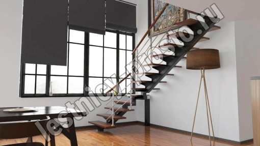 Лестница PROSTO MONO прекрасно подходит для интерьеров с минималистичным дизайном, дизайном в стиле лофт или хайтек. Основой лестницы служит цельносварной центральный косоур, который обеспечивает надёжную прочность конструкции и "парящий" дизайн, лестница с таким каркасом в интерьере смотрится легко и воздушно.