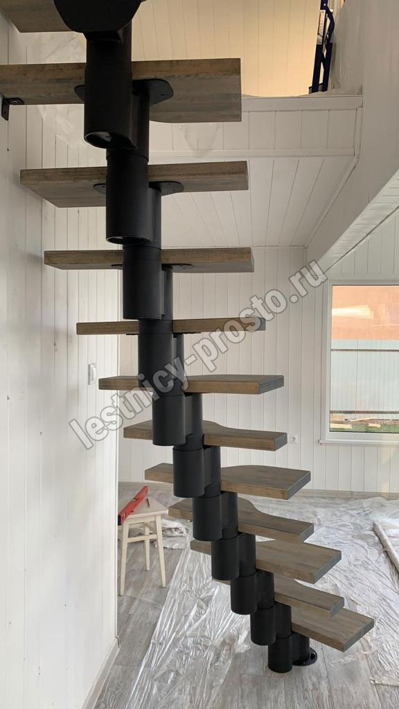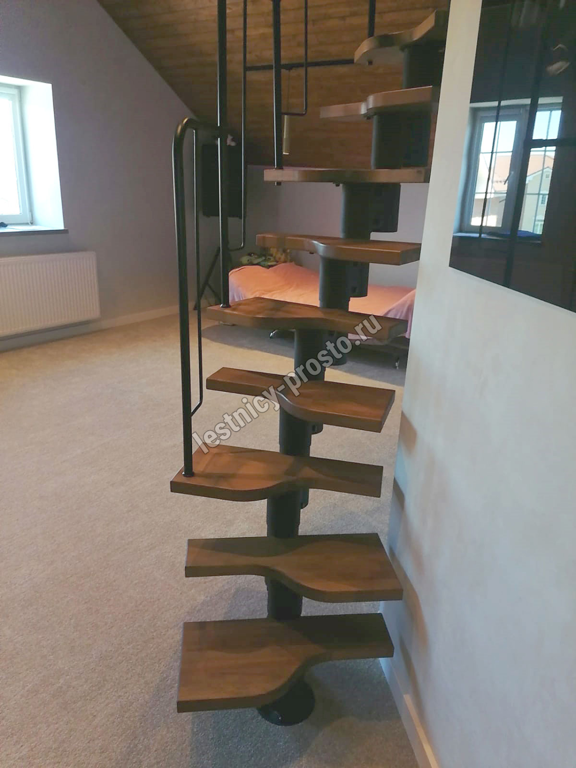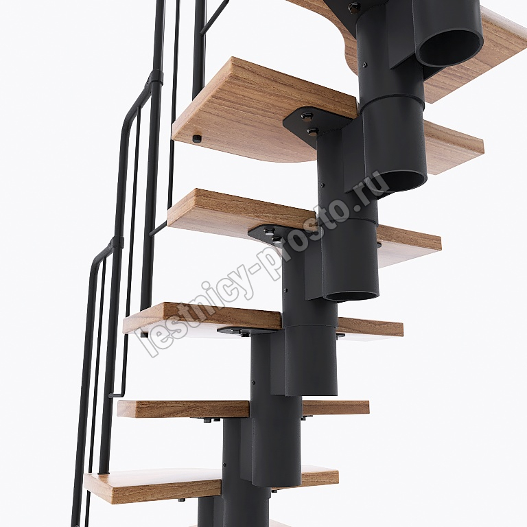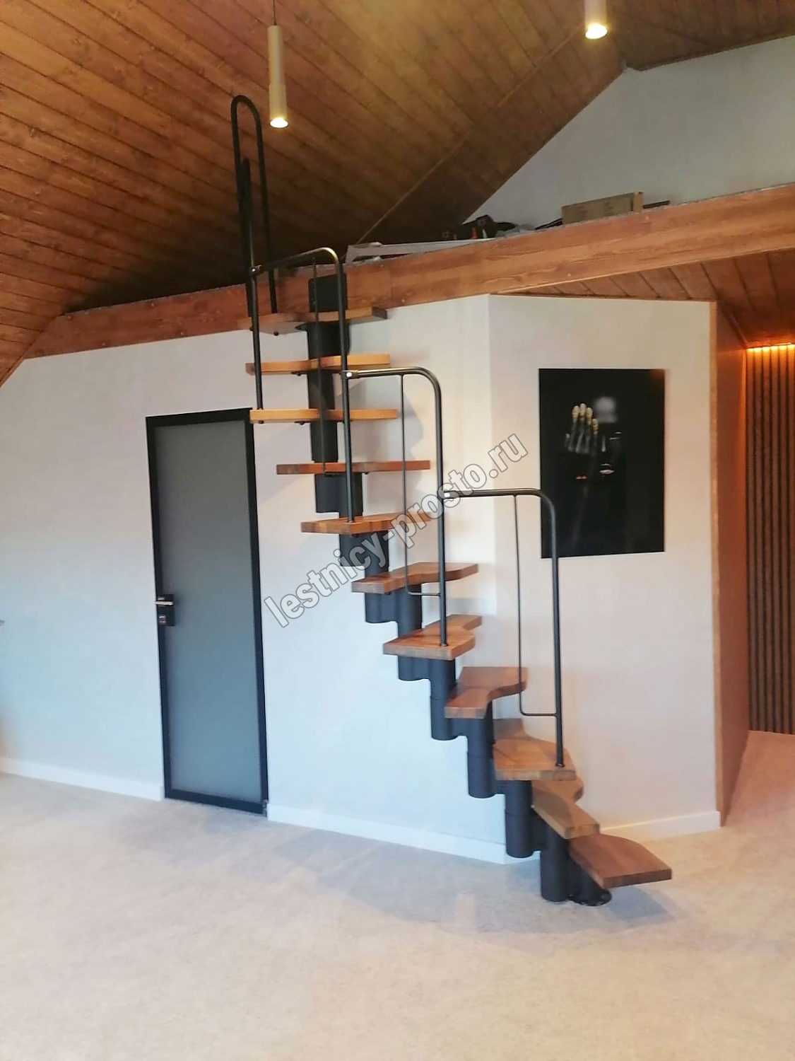 Лестница Prosto Urban Black гусиный шаг 700 мм, h234-336 см (13 ступеней), дуб
