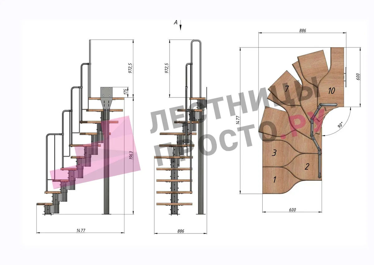 - Регулируемый по высоте в пределах 180-240 мм модуль. Большой диаметр и толщина металла деталей обеспечивают жесткость и прочность конструкции. Регулировка каждого модуля по высоте позволяет легко приспособить лестницу под ваше помещение.