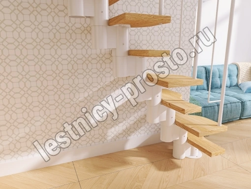 Лестница Prosto Urban White гусиный шаг 600 мм, h198-288 см (11 ступеней), ясень