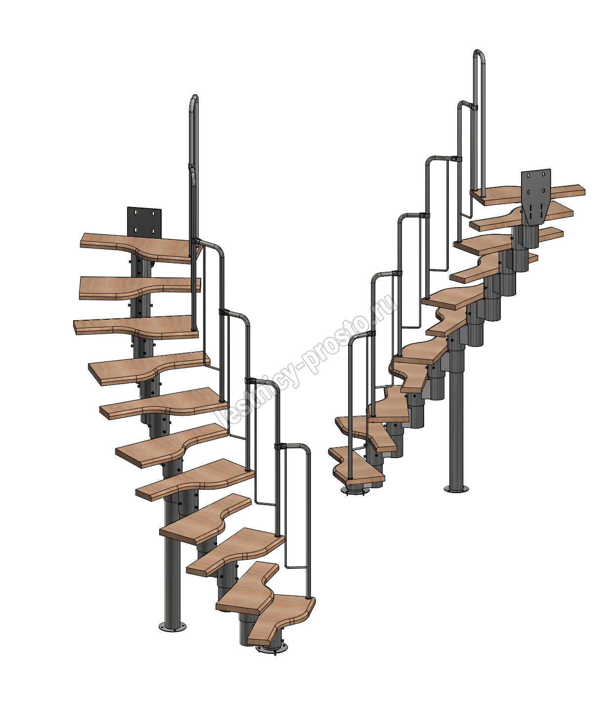 Лестница Prosto Urban White гусиный шаг 700 мм, h198-288 см (11 ступеней), дуб
