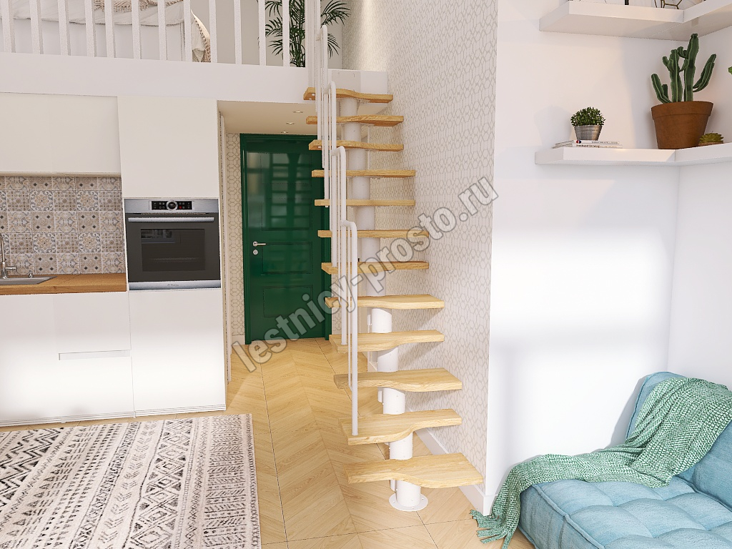 Лестница Prosto Urban White гусиный шаг 700 мм, h216-312 см (12 ступеней), дуб