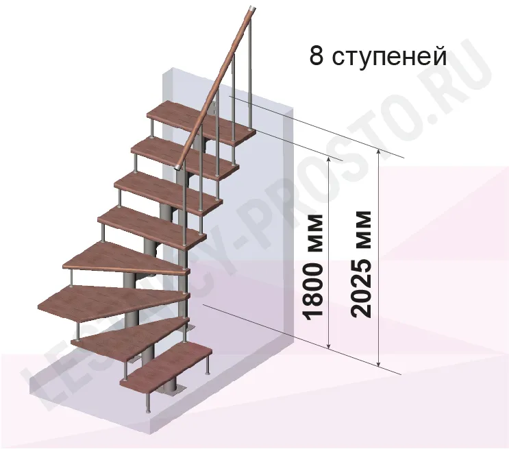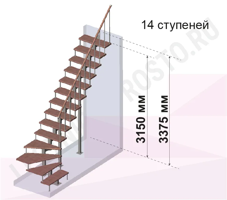 Количество ступеней до поворота - может быть любым , по запросу мы рассчитаем стоимость и сделаем чертеж-схему в соответствии с вашими параметрами.