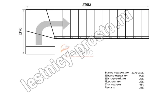 Модульная лестница Фаворит 225 3375-3525, Серый, Сосна, Нержавеющая сталь