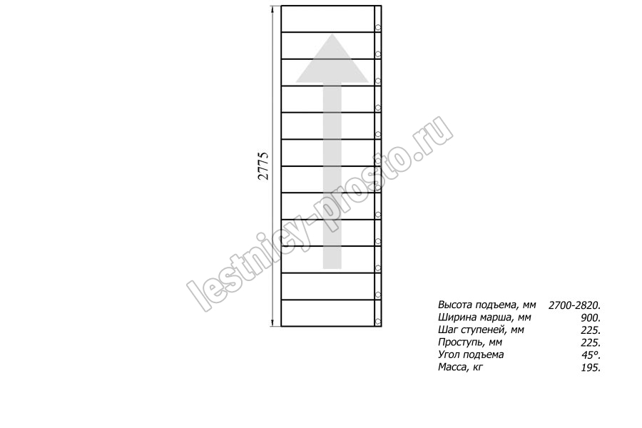 Модульная лестница Стандарт 2700-2820, Серый, Сосна, Нержавеющая сталь