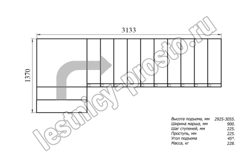 Модульная лестница Статус 225 2925-3055, Серый, Бук, Нержавеющая сталь