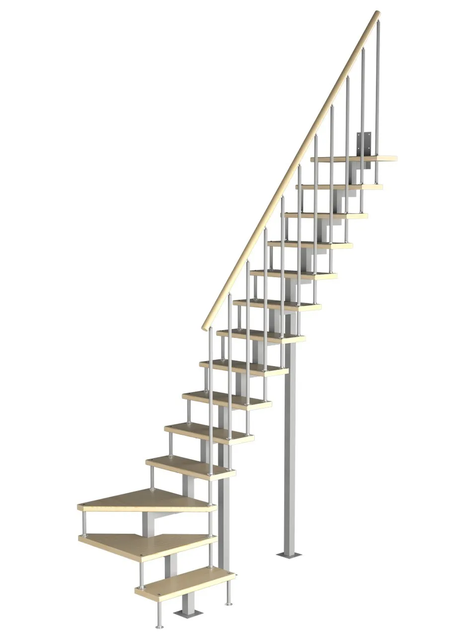 Модульная малогабаритная лестница Компакт 2475-2700, Белый, Бук, Нержавеющая сталь