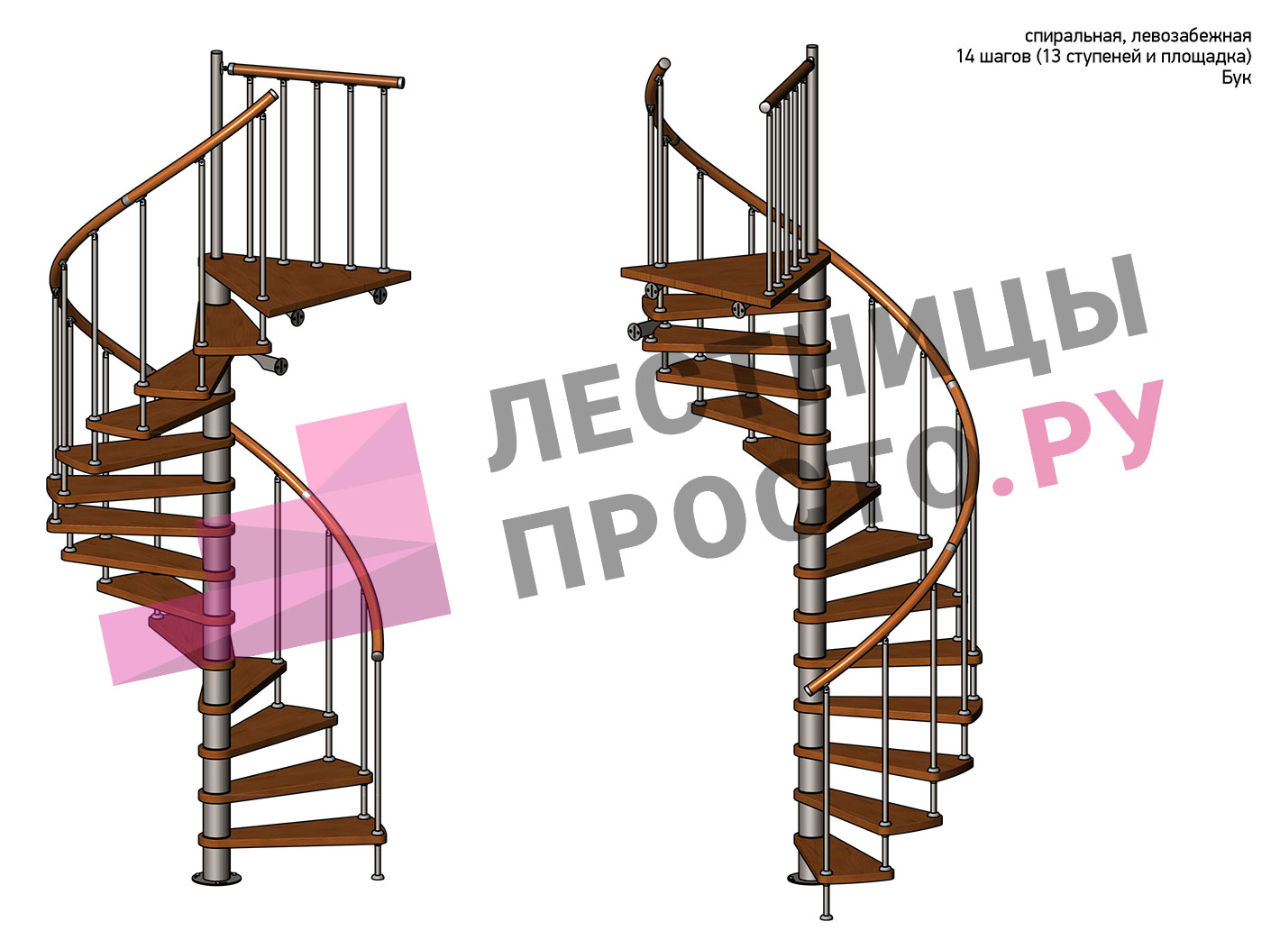 Правая, d=160см, 13 ступеней + площадка