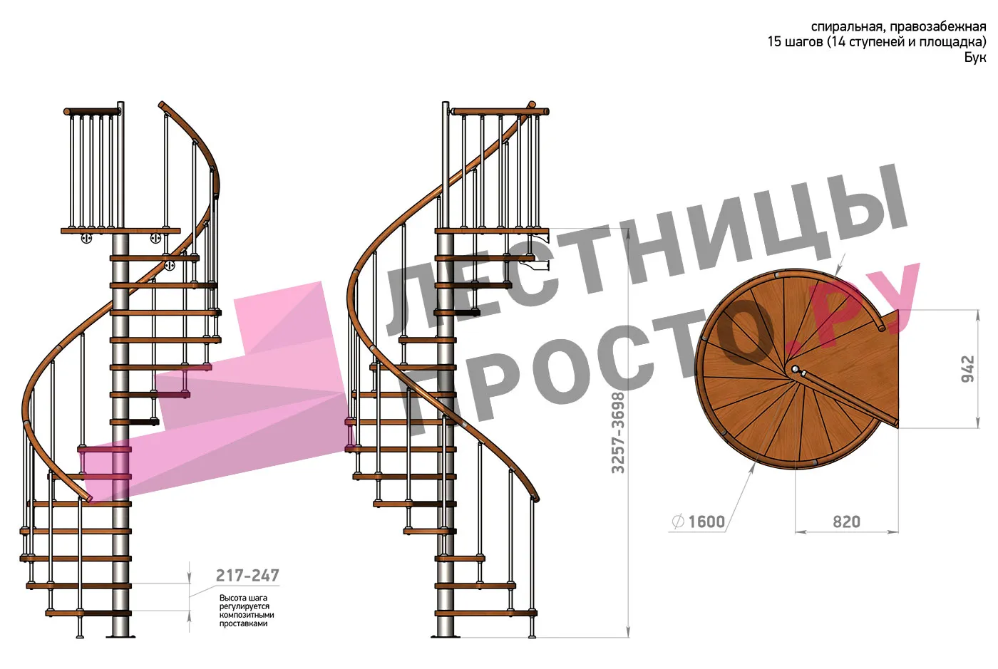 | Винтовая лестница Prosto Spiral Black D160см, h282.2-326,3 см, бук |
