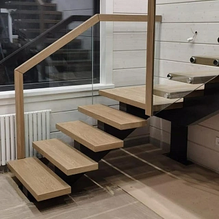 Лестница из стекла/дуба/керамогранита с подстветкой LP-1-53