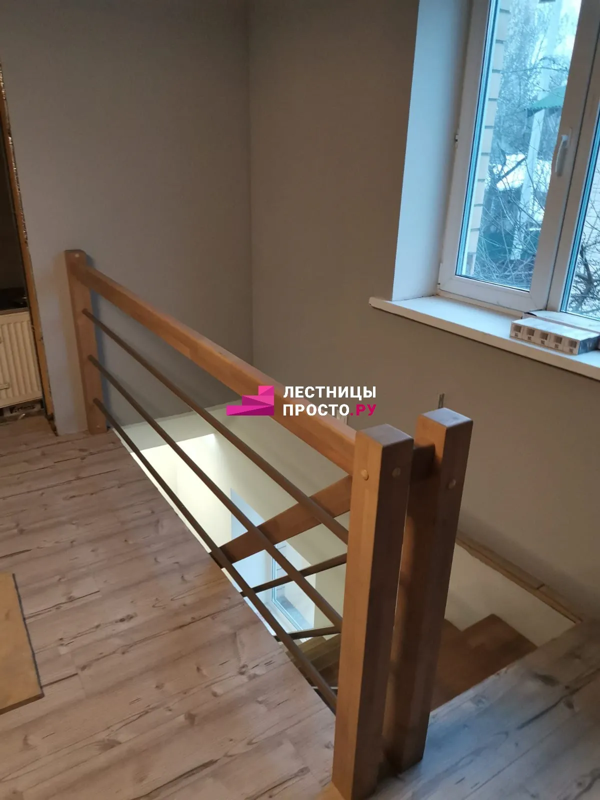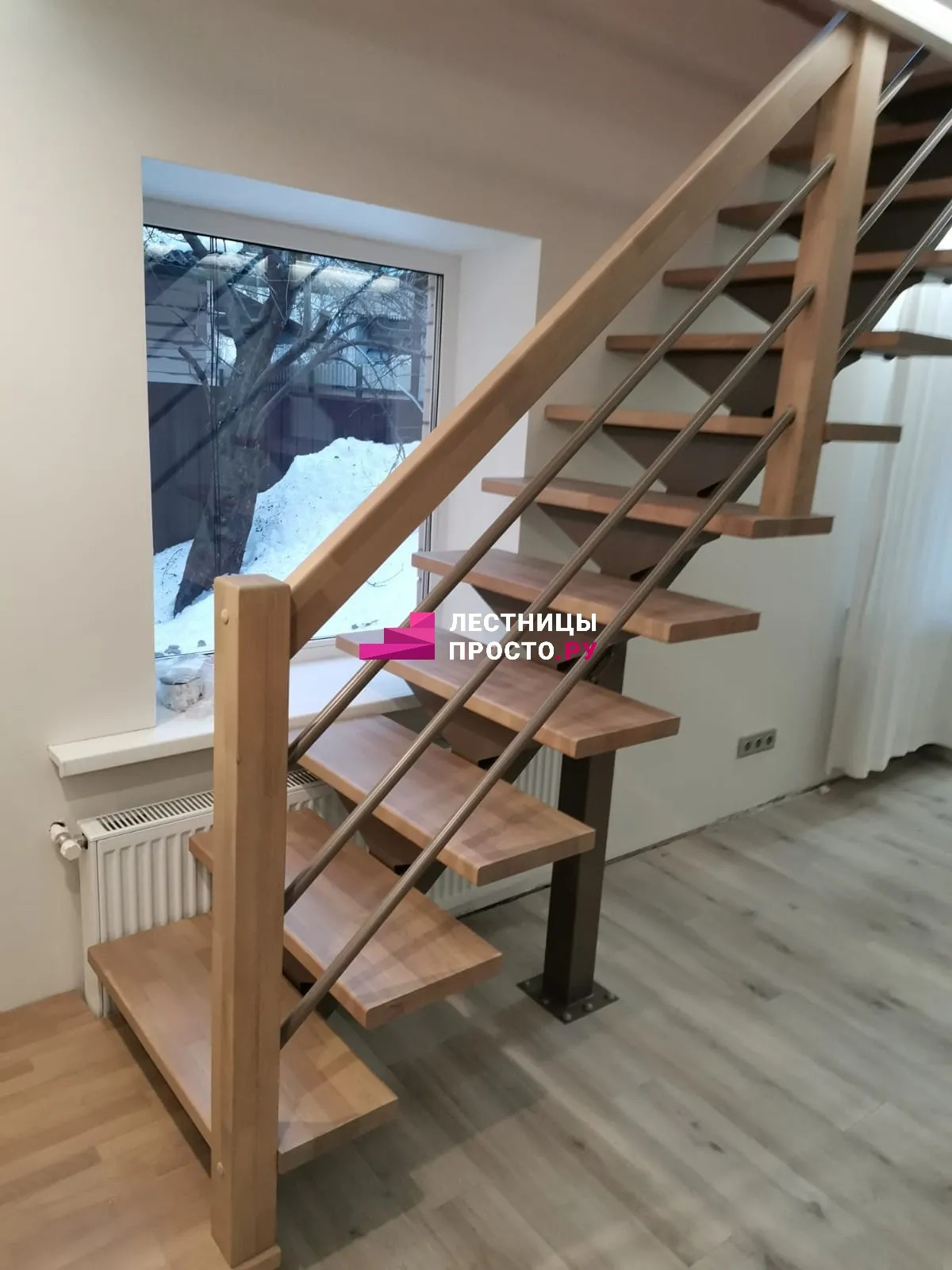 Лестница из сосны с поворотом и подступёнками для частного дома