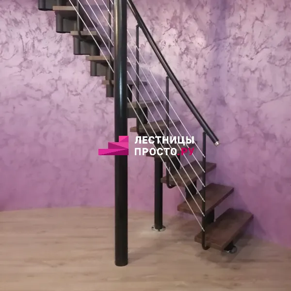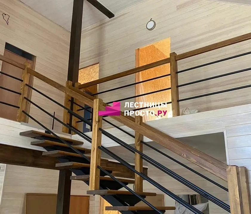 Лестница на центральном металлическом каркасе с просторной площадкой